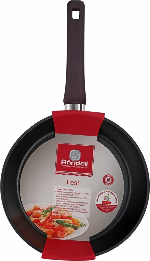 Отзывы на Сковорода RONDELL Fest 24х5,2см, антипригарное покрытие, кованый алюминий, индукция