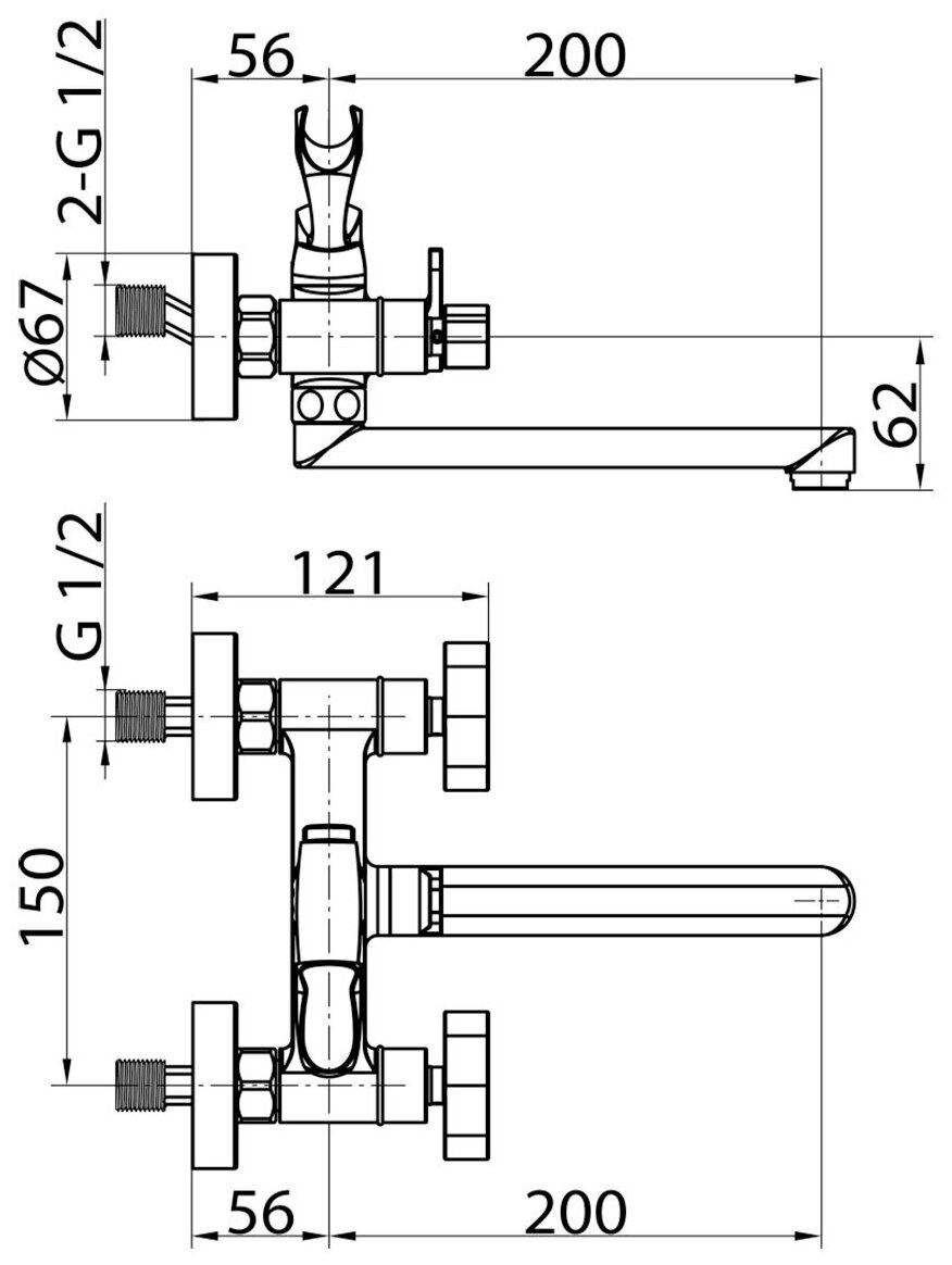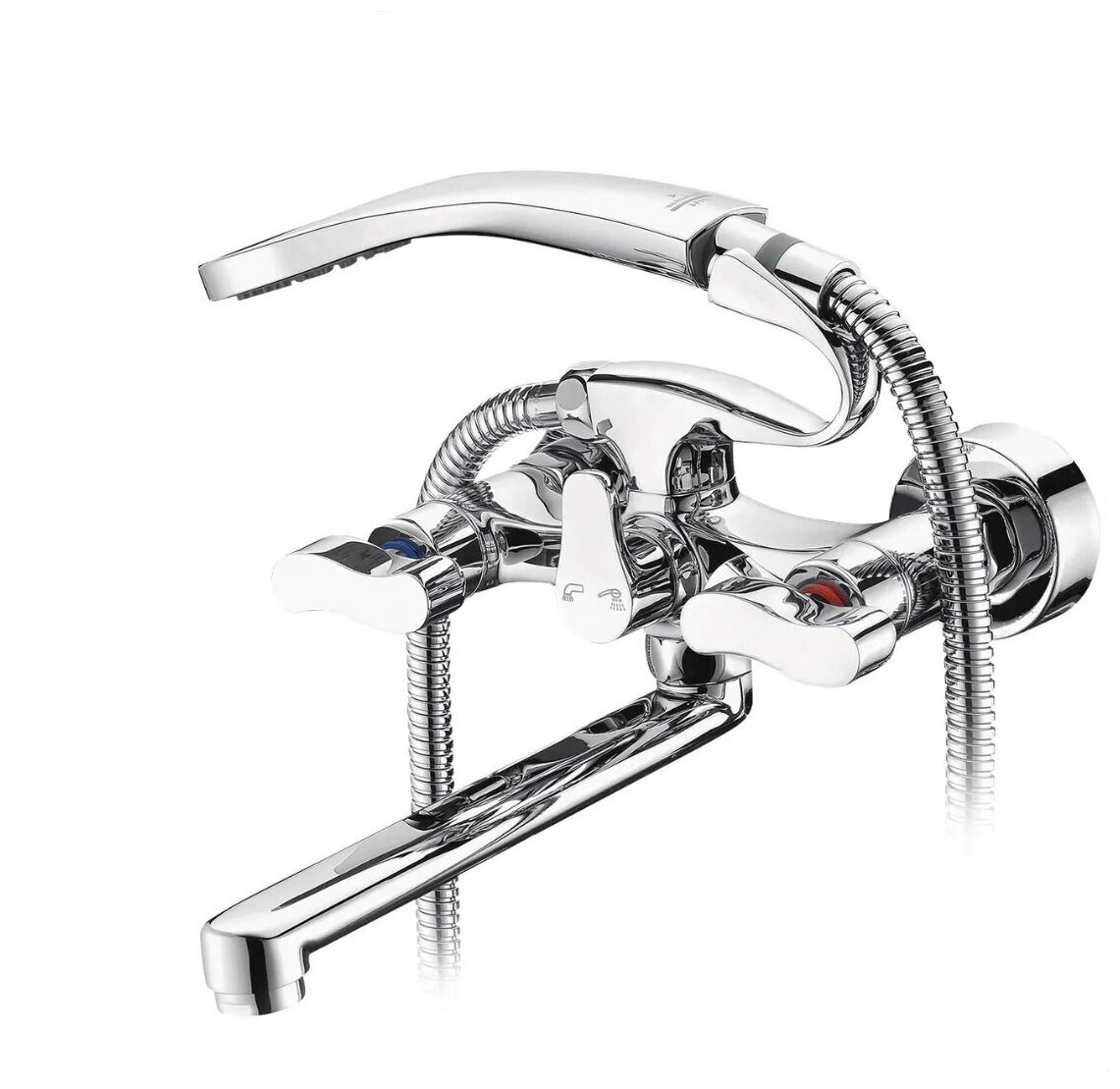 Смеситель на раковину настенный Эверест B46-350 с круглым поворотным изливом, кран-буксы 1/2", хром