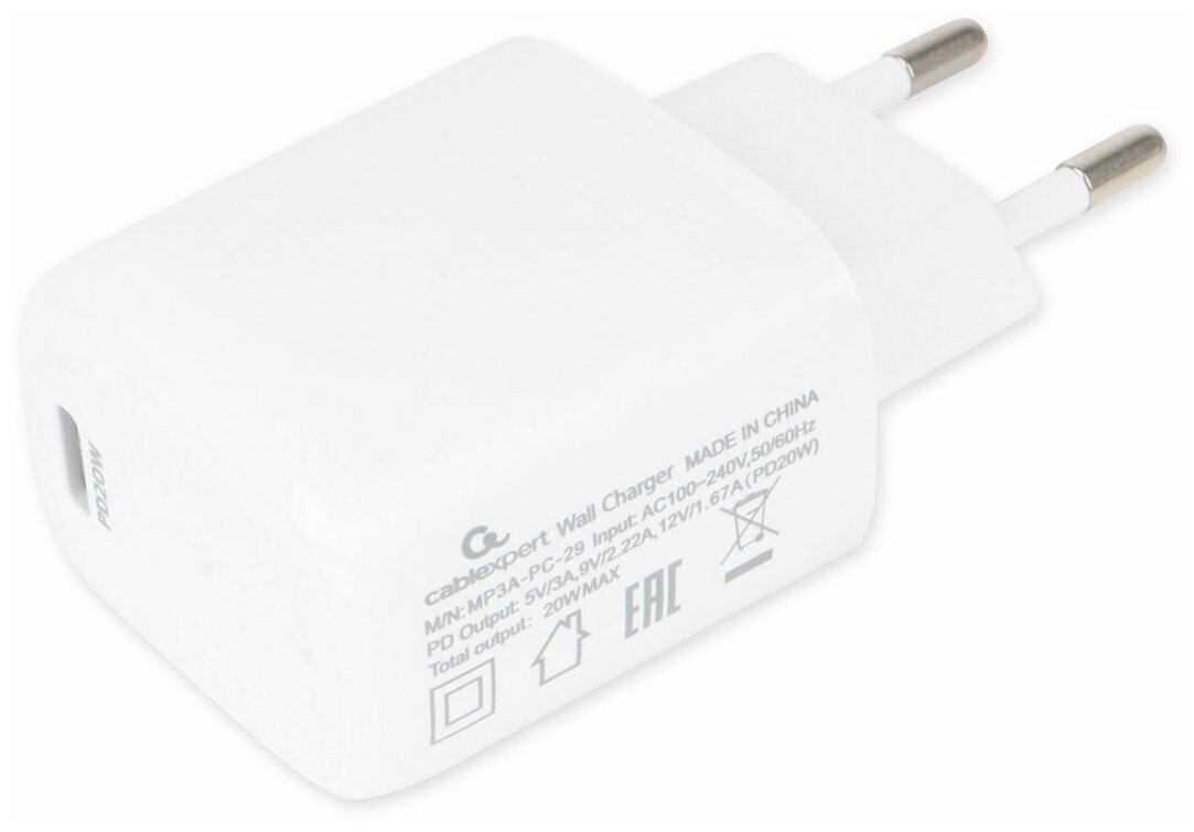 Адаптер питания Cablexpert PD20W, QC3.0 , MP3A-PC-29, белая информация: