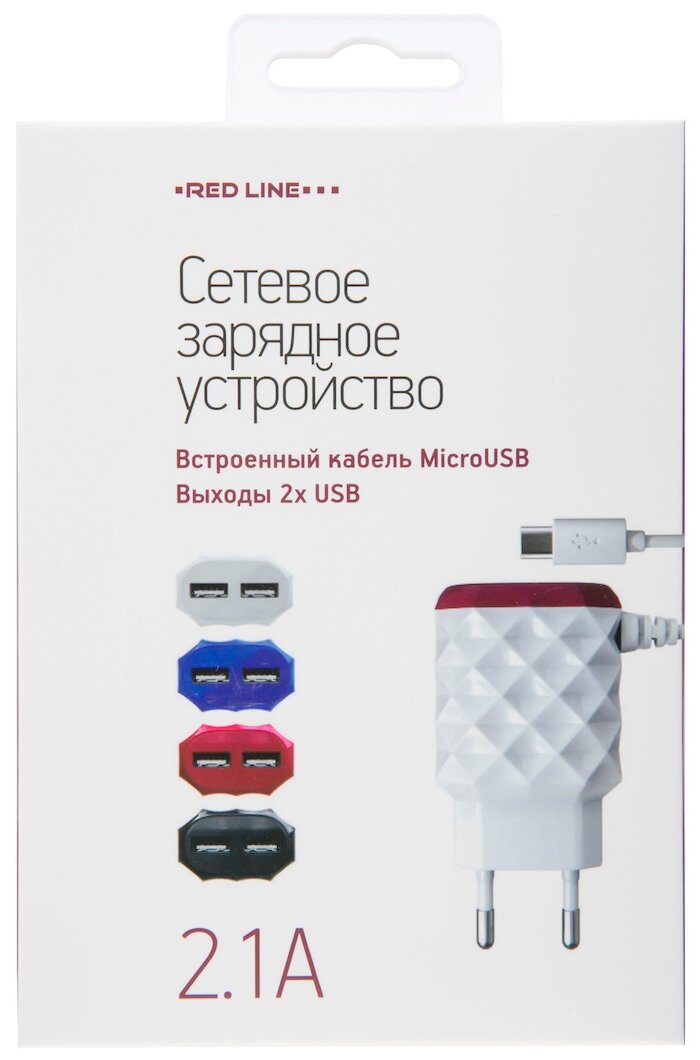 10 цен на СЗУ Red Line 2 USB+MicroUSB модель NC-2.1AC, 2.1A, красный УТ000013617