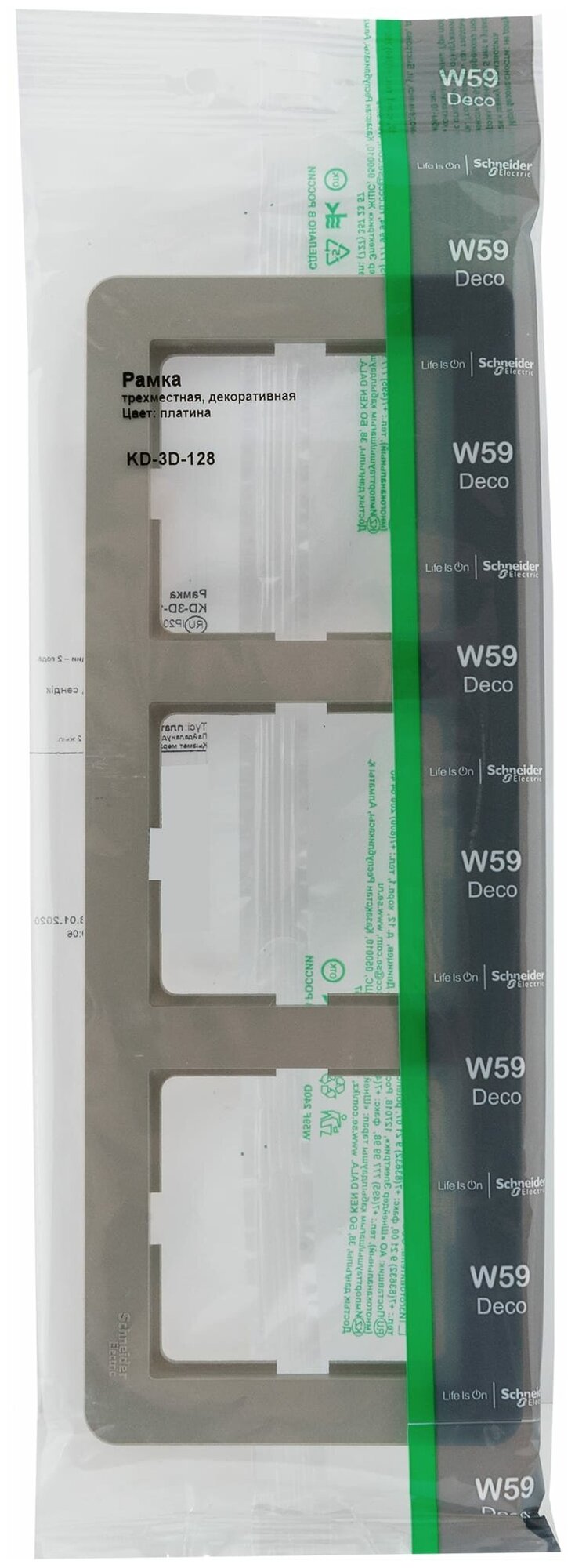 Рамка для розеток и выключателей Schneider Electric W59 Deco 3 поста, цвет платина информация: