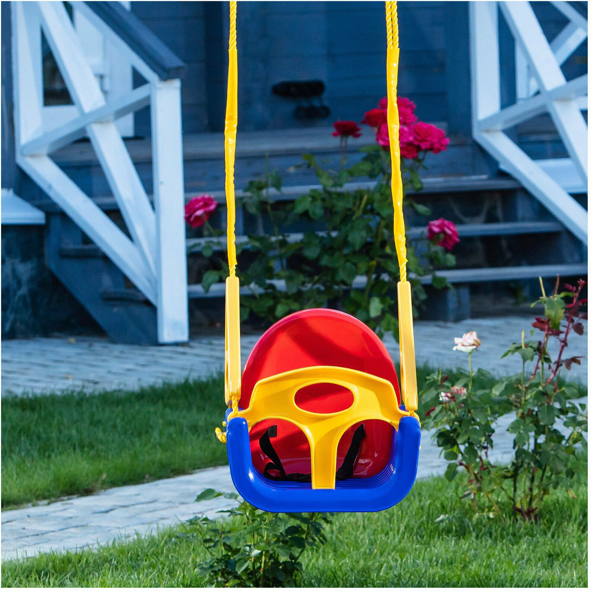 | Особенности | качели без опоры / ограничивающий бортик / ремни безопасности / съемная спинка |