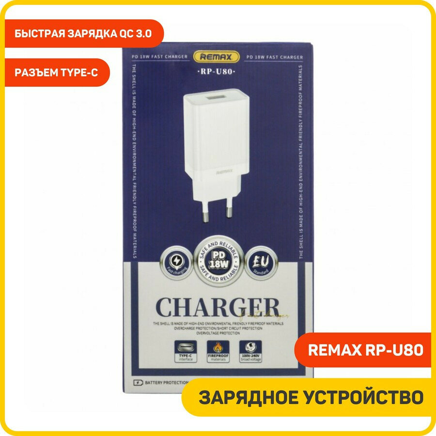 Сетевое зарядное устройство (СЗУ) Remax RP-U80 (Type-C PD) 3 А, белый информация: