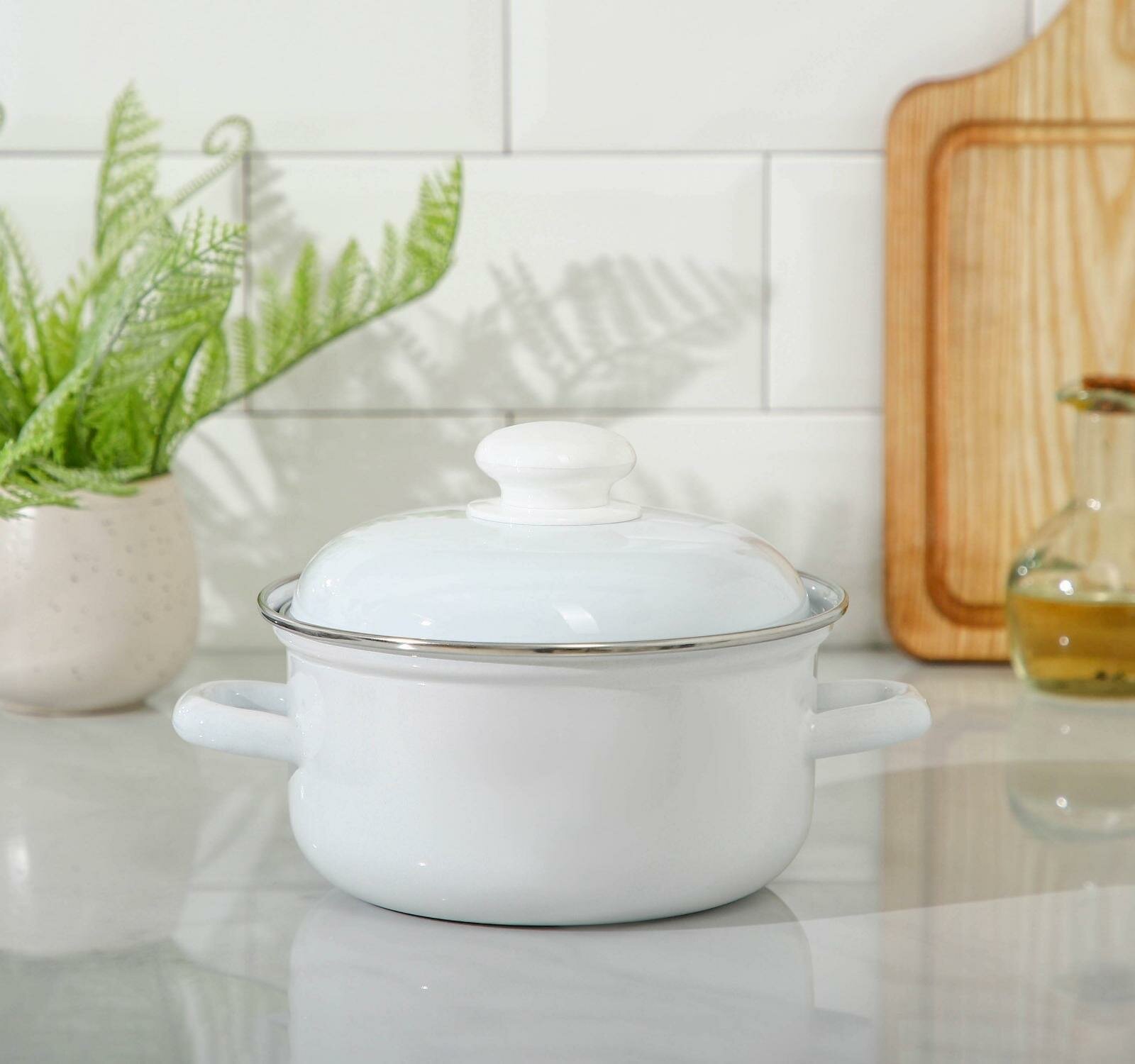 10 цен на Кастрюля цилиндрическая, 1,5 л, d=16 см, эмалированная крышка, индукция, цвет белый