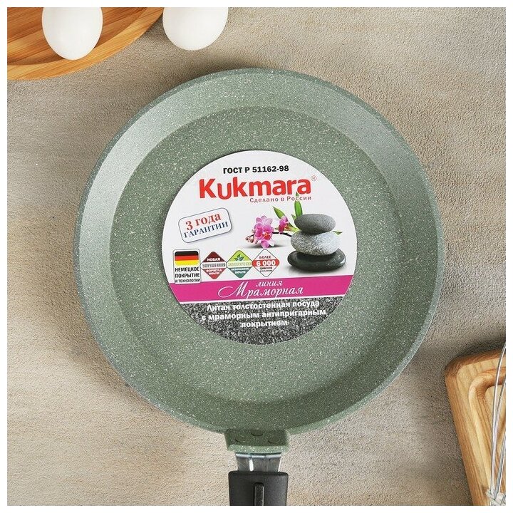 Отзывы на KUKMARA Сковорода блинная, d=24 см, пластиковая ручка, антипригарное покрытие, цвет фисташковый мрамор