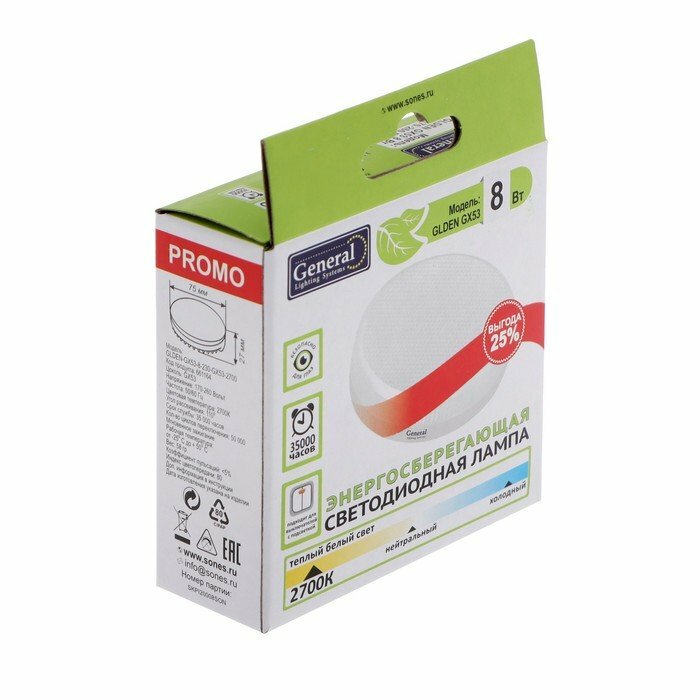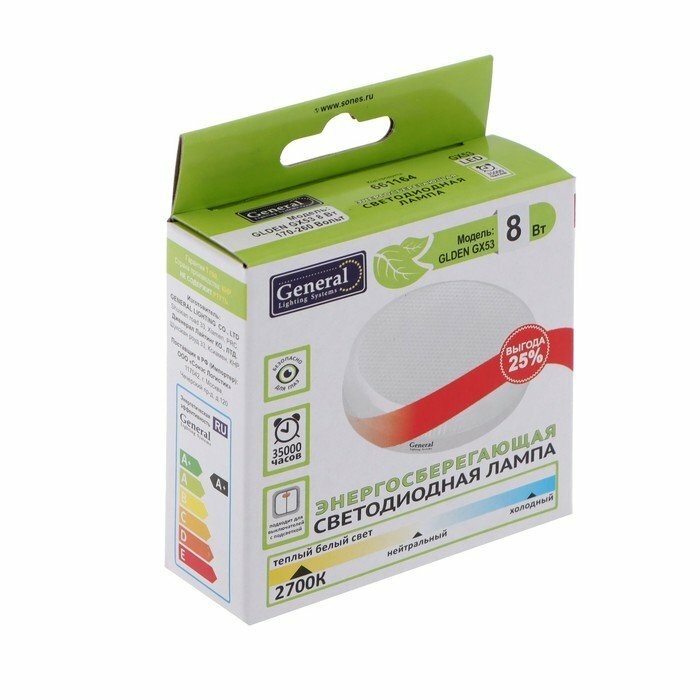 Отзывы на Лампа светодиодная GENERAL GLDEN, GX53, 8 Вт, 230 В, 2700 К, 540 Лм