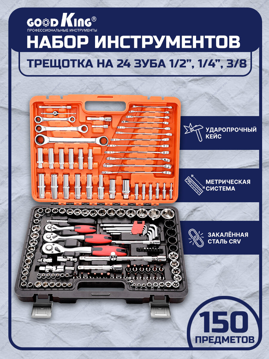 Набор инструментов 150 предметов 1/4" 3/8" 1/2" трещотка GOODKING K-10150 Набор инструментов для автомобиля информация: