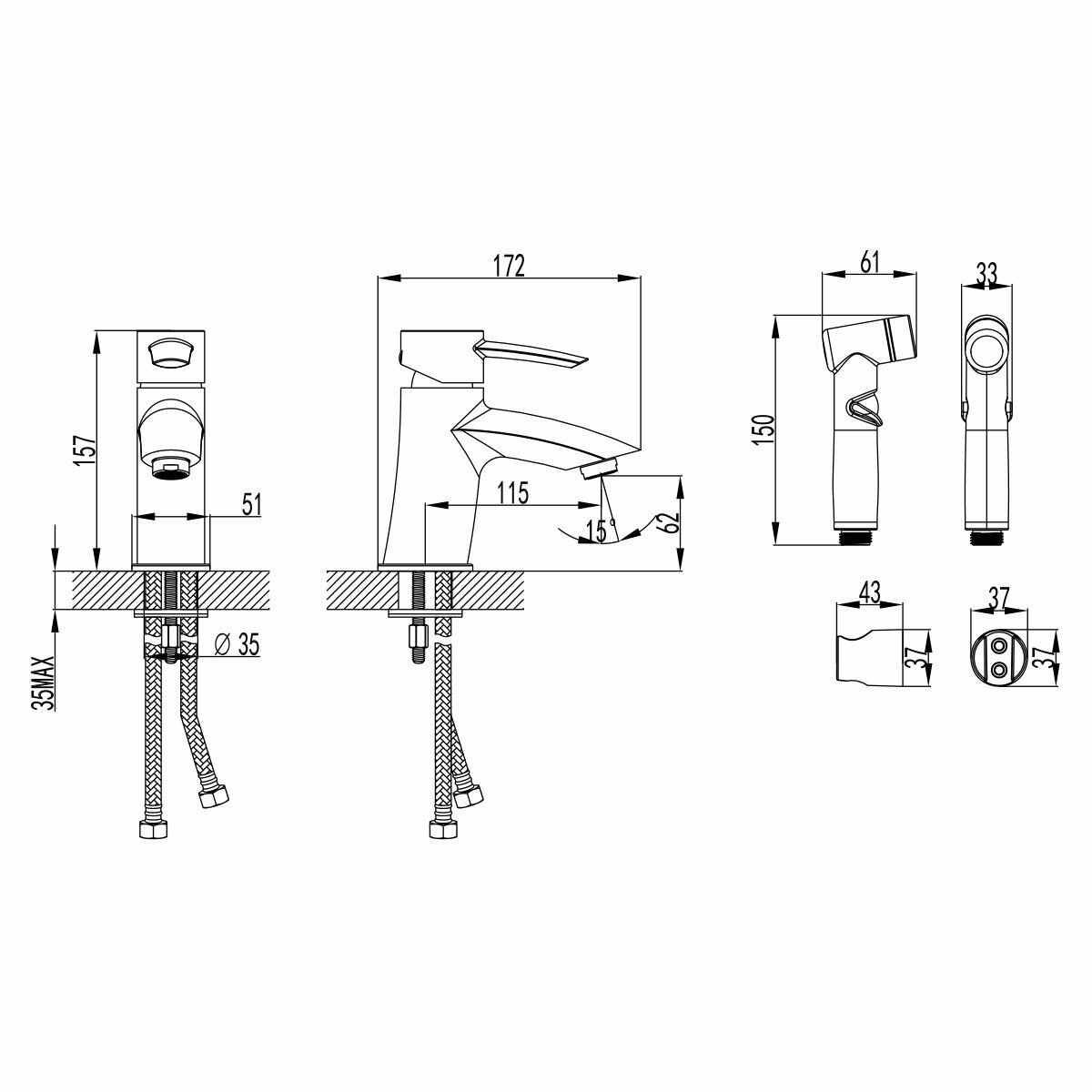 | Комплектация | Аэратор, Керамический эко-картридж 35 мм, Аксессуары в комплекте: лейка гигиенического душа с регулятором напора, шланг 1,5 м, настенное крепление для лейки, Гибкая подводка 1/2" 35 с, Металлическая рукоятка |