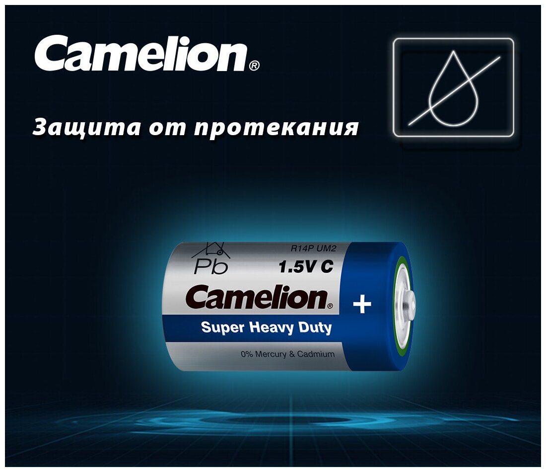 Батарейка 1,5В, емкость 3800мА*ч, Camelion R14 Blue BL-2 (2 шт.) информация: