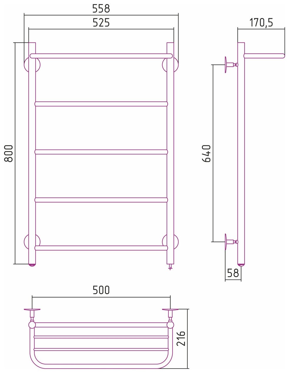 Полотенцесушитель электрический стилье "Формат 30 П" 800х500 (Полка + 4) П16 информация: