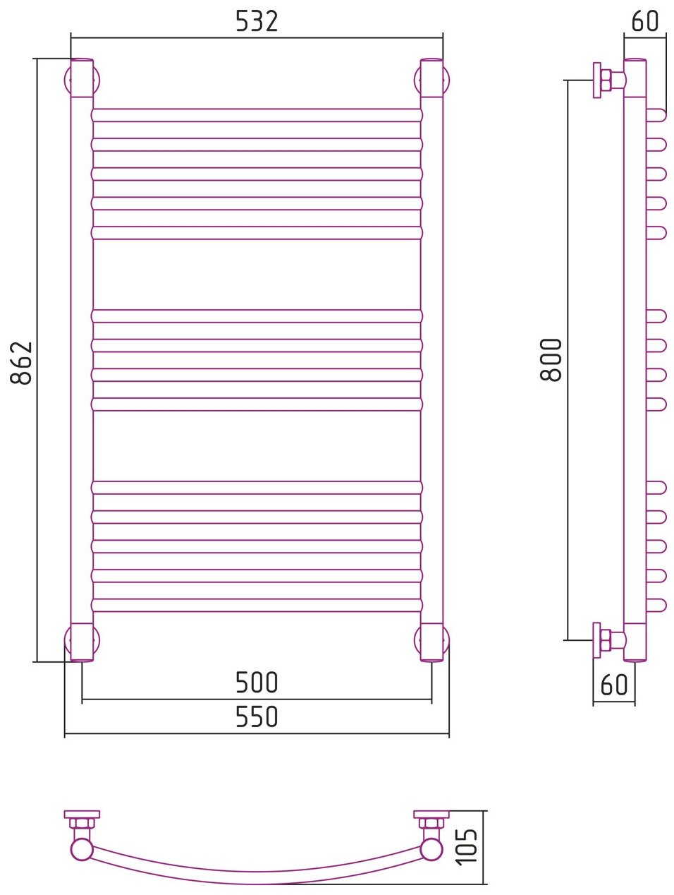 Полотенцесушитель водяной "Богема+" 800х500 выгнутая информация:
