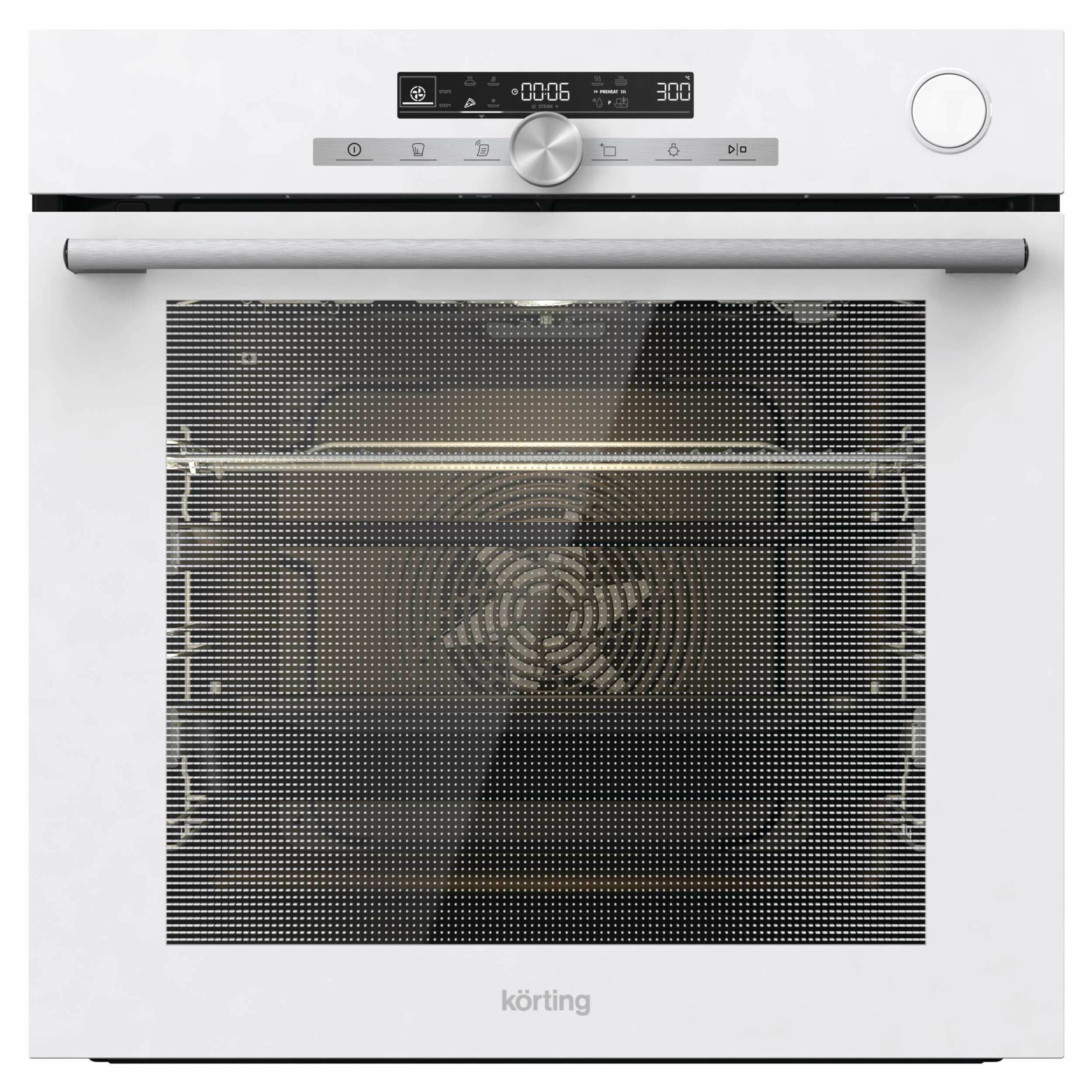 Встраиваемая газовая духовка Korting Встраиваемый 60 см, Motion, 77 л, 12 режимов, очистка паром, белый цвет