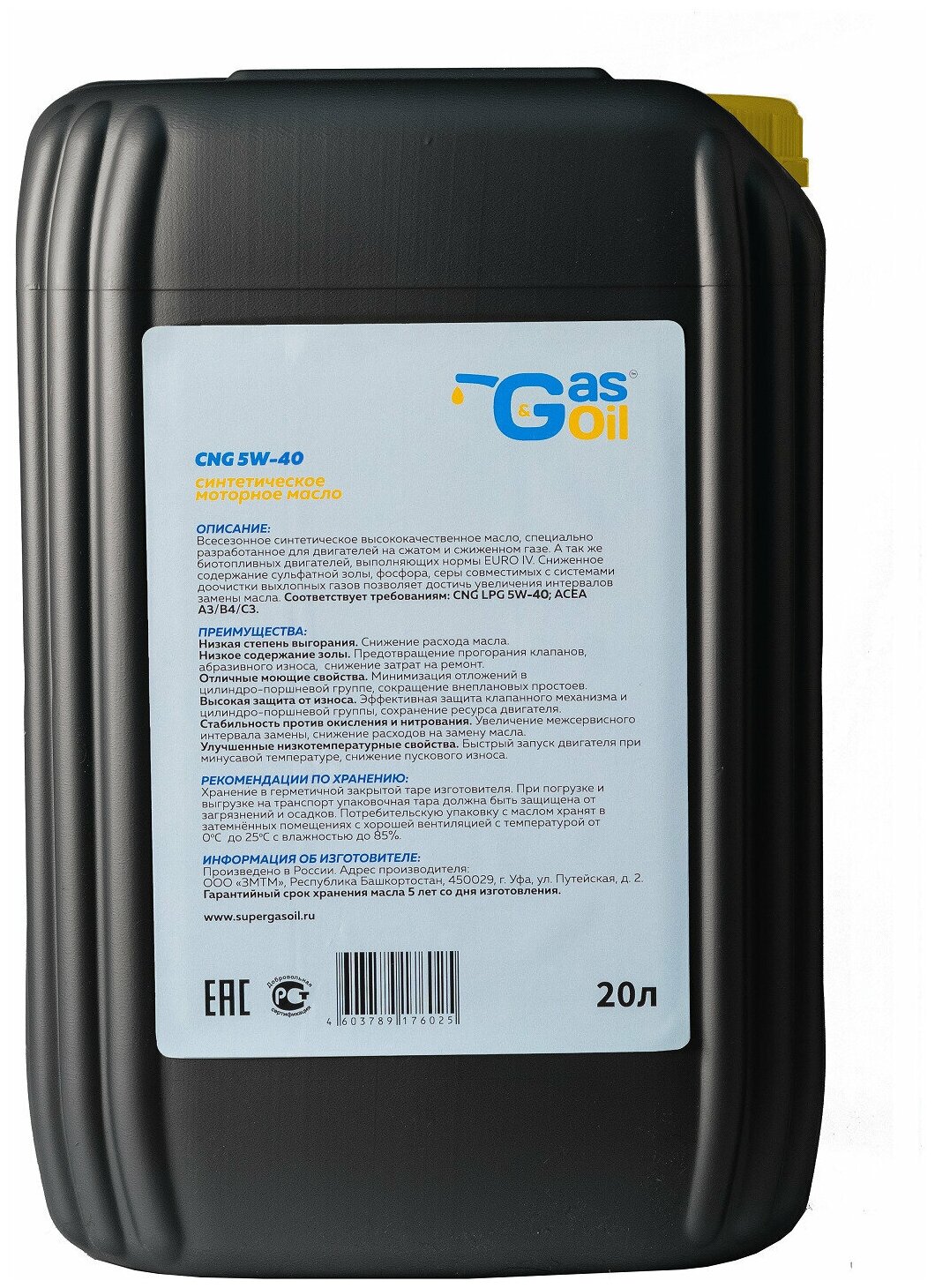 Gas&Oil Моторное масло CNG 5W-40 Синтетическое 20 л информация: