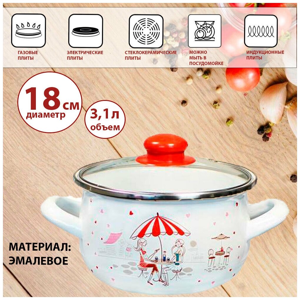 Кастрюля INTEROS 3918 Променад 3,1 л, стеклянная крышка информация: