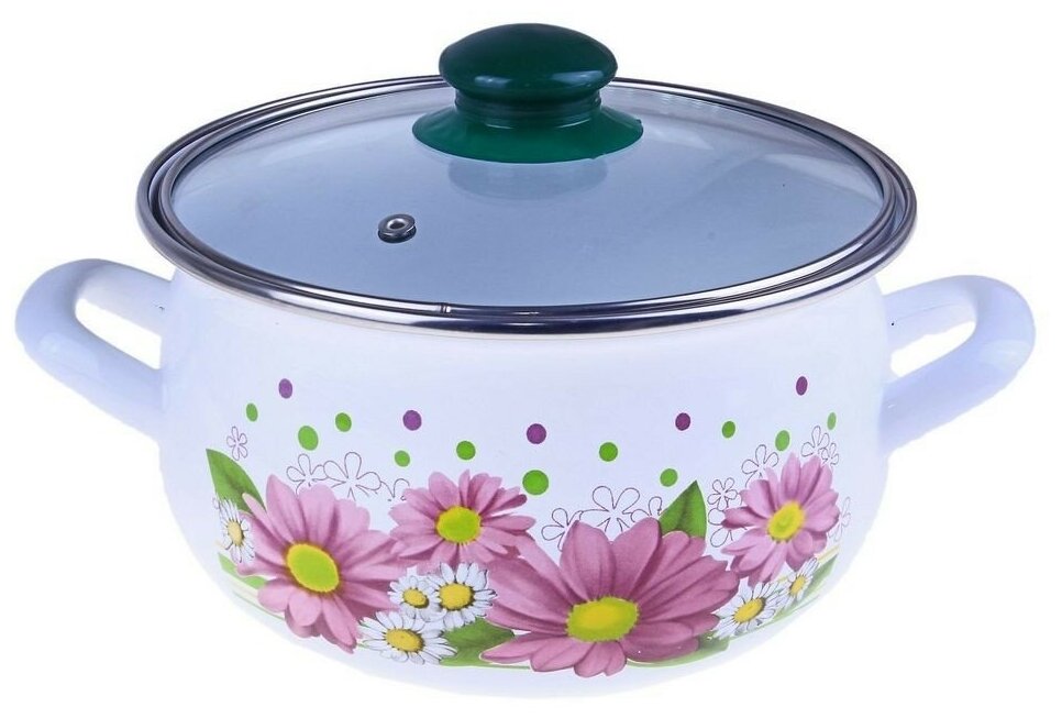 10 цен на Розовые герберы Кастрюля 3,1л из нержавеющей стали толстым дном, эмалированная посуда для кухни с крышкой