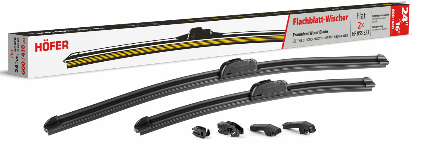 Отзывы на Щетка стеклоочистителя бескаркасная Hofer 24"/600 мм + 16"/410 мм