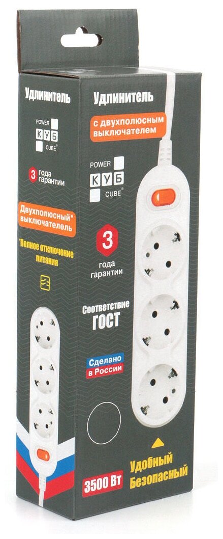 Отзывы на Удлинитель Power Cube PC 5м 3р с/з, с выкл. 10А/2,2кВт PC-Y-5-3S-5