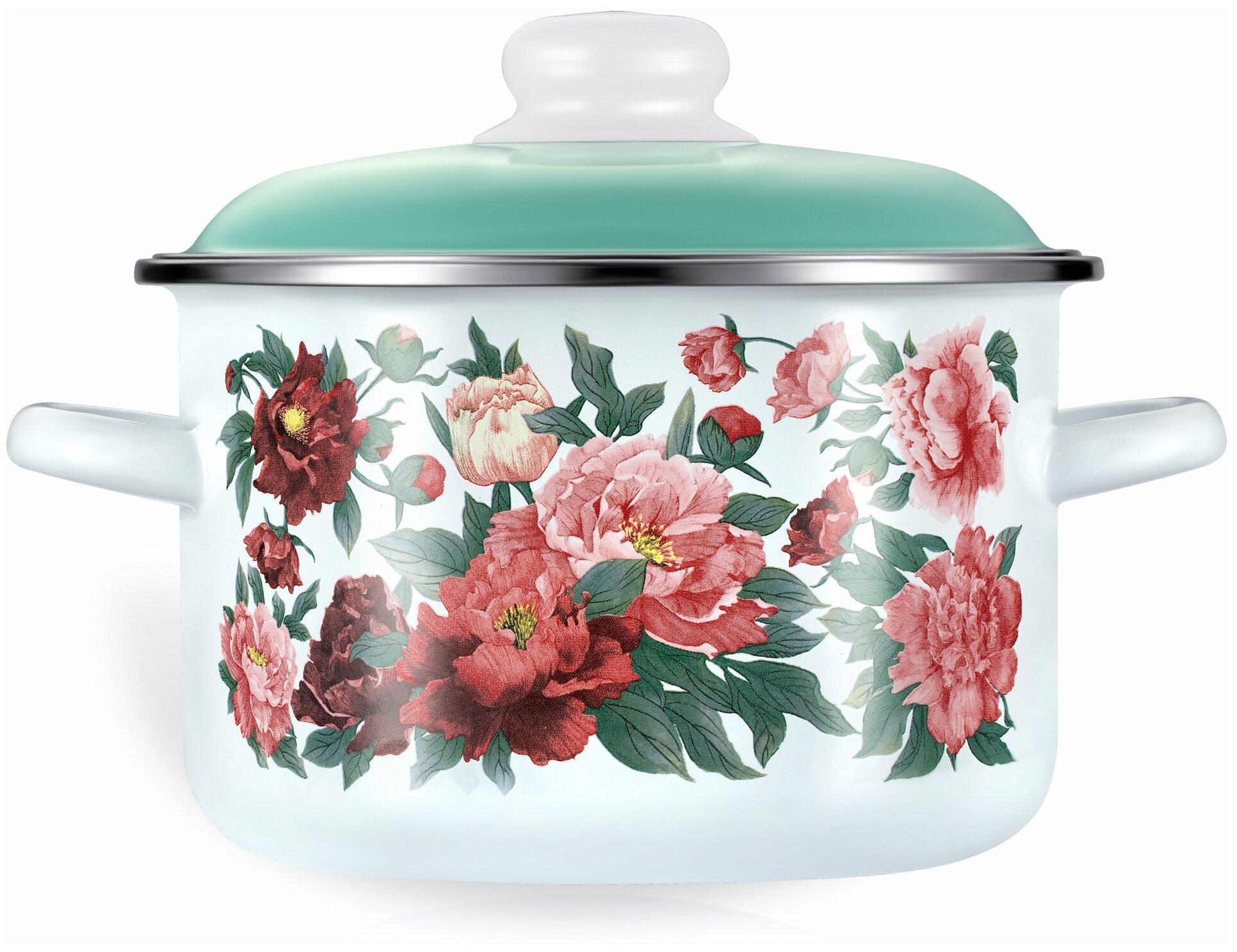 Кастрюля эмалированная 1,5 л с ободком белая с рисунком Фруктовая фантазия