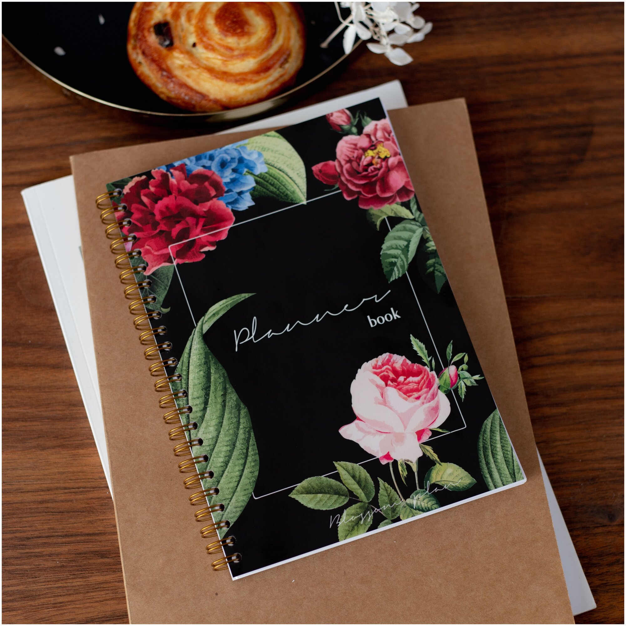 10 цен на Планер блокнот еженедельник на год BlossomPlan Черный с цветами. Недатированный, А5, 120 страниц
