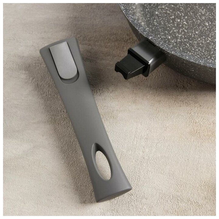 Сковорода "Гранит", d 26 см, антипригарное покрытие, съёмная ручка, стеклянная крышка, цвет серый информация: