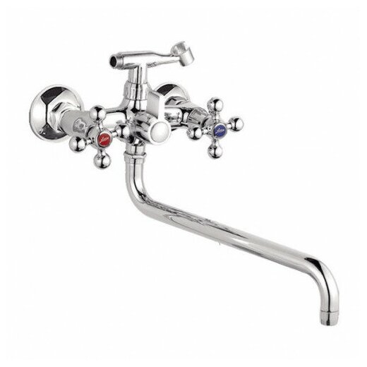 Смеситель на раковину настенный Эверест B46-350 с круглым поворотным изливом, кран-буксы 1/2", хром