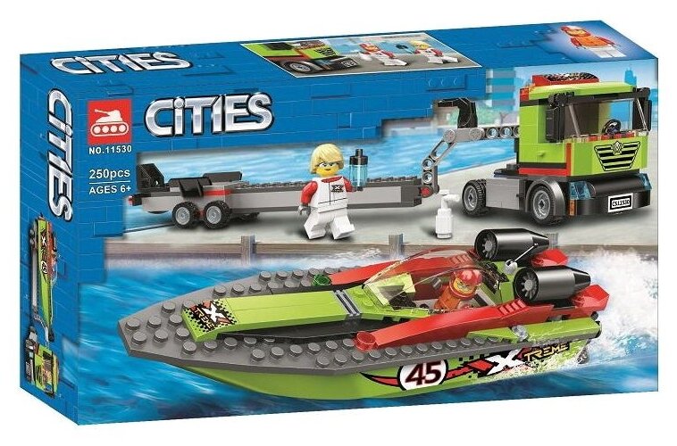 10 цен на Конструктор Cities / Сити / Город / Транспортировщик скоростных катеров 11530 / 250 деталей