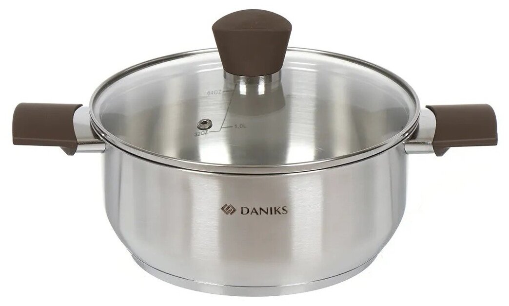Кастрюля нержавеющая сталь, 2.2 л, с крыш, Daniks