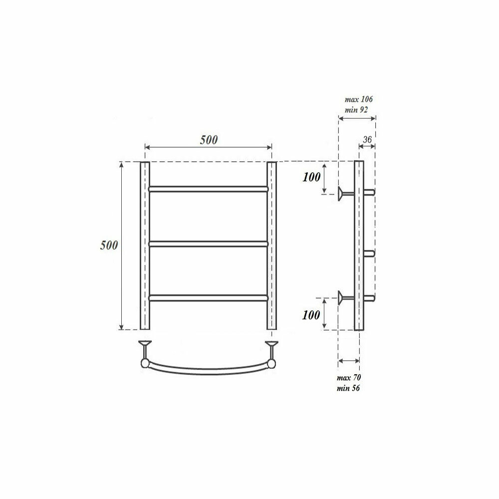 Полотенцесушитель Омега (Ширина:500, Высота:1000)