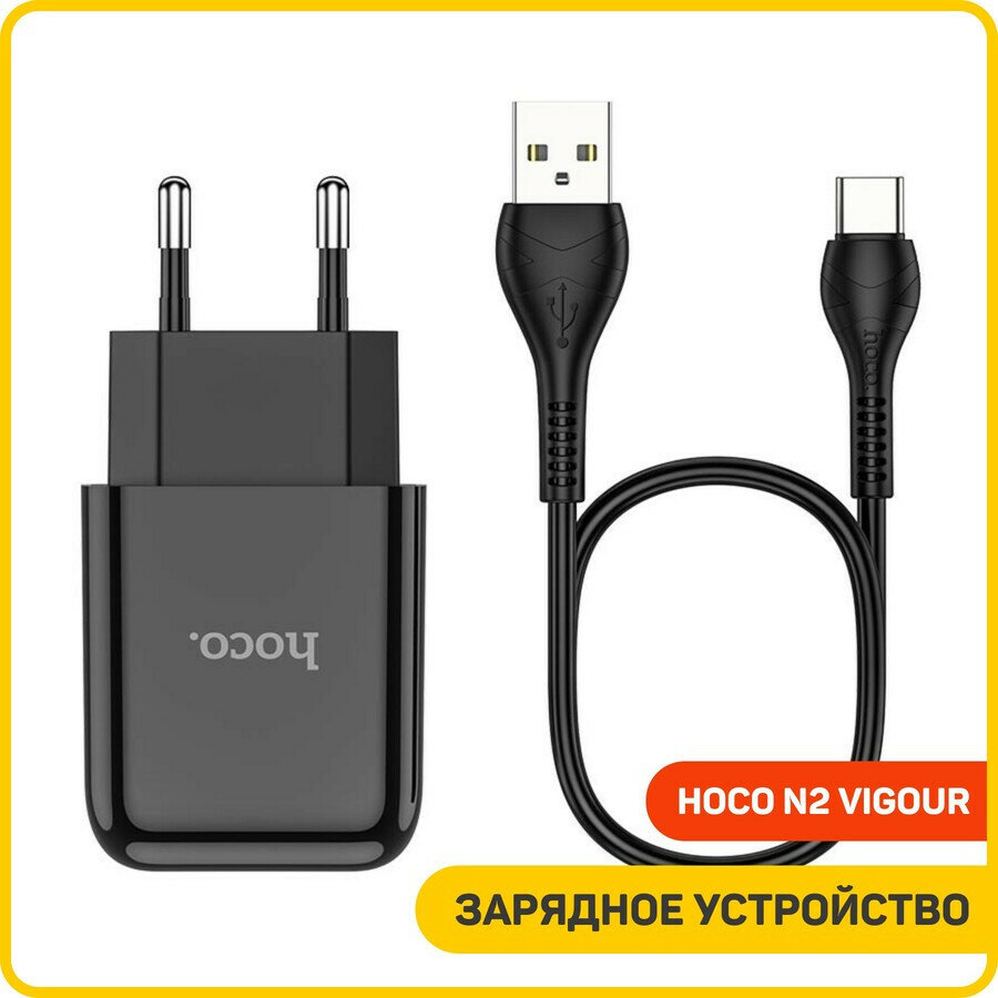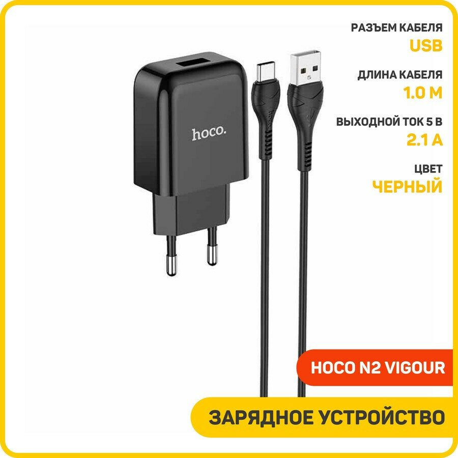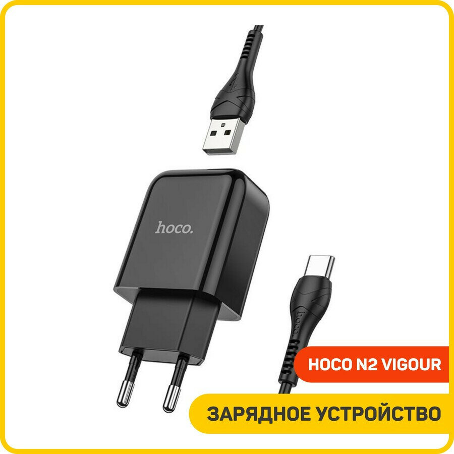 Сетевое зарядное устройство (СЗУ) Hoco N2 Vigour (USB) + кабель Type-C, 2 А, черный информация: