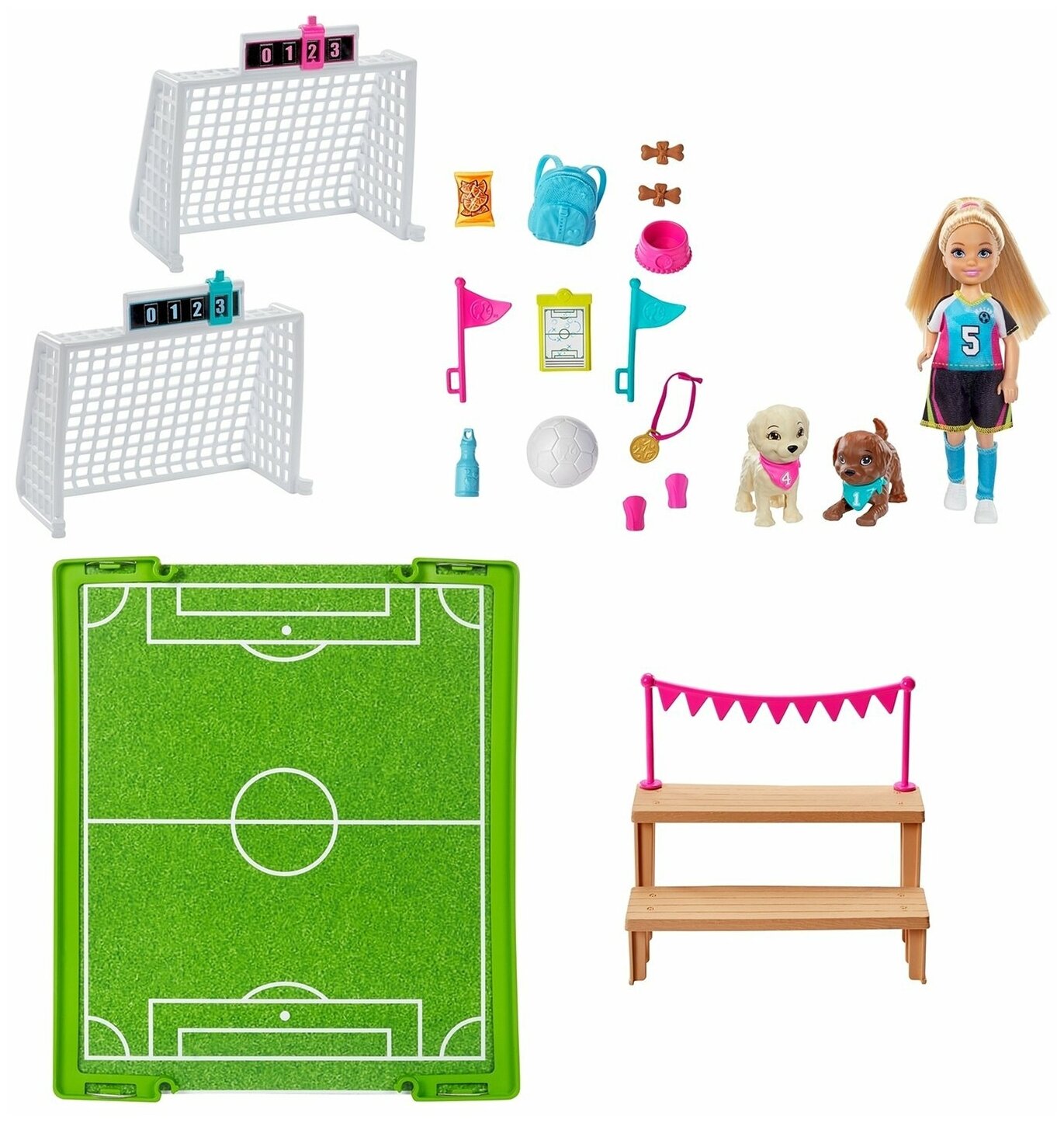 | Комплектация | 1 кукла, 1 поле, 2 футбольных ворот, 1 комплект трибун, 2 фигурки щенков, тематические аксессуары |