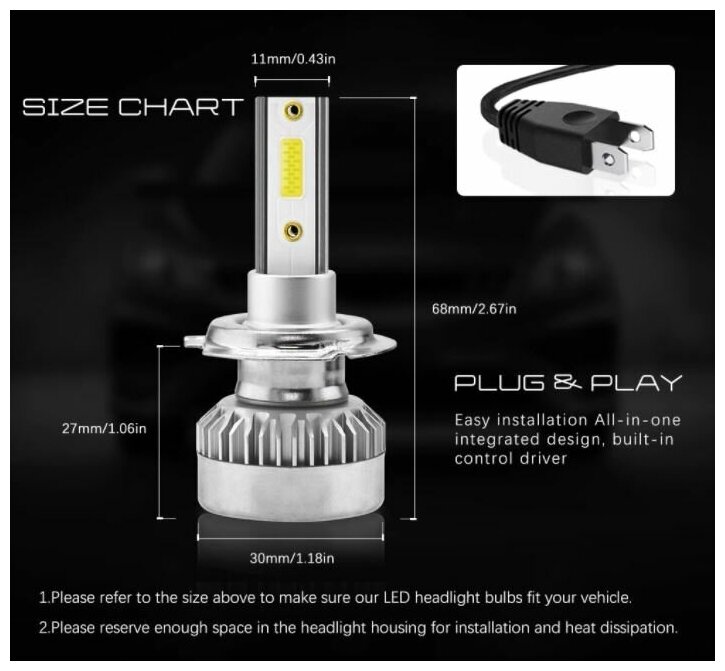 Автомобильные светодиодные лампы TXVSO8 H7 Комплект 2шт. информация: