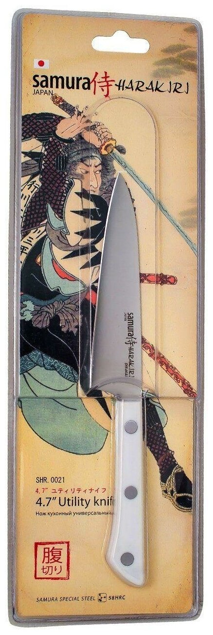 --- Нож кухонный универсальный Samura Harakiri, лезвие 12 см, белая рукоять, сталь AUS-8 информация: