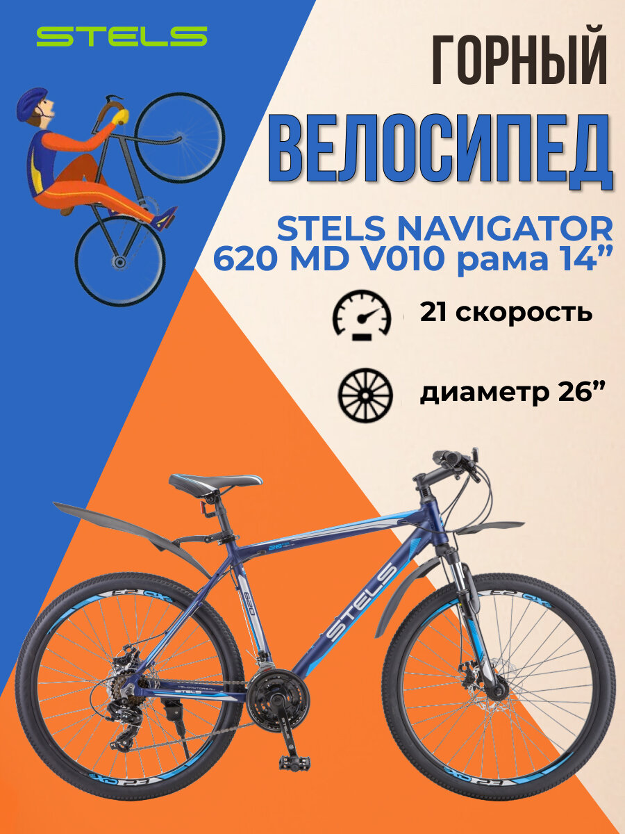 10 цен на Велосипед Stels Navigator 620 MD V010 Тёмно-синий (LU088804), 14'