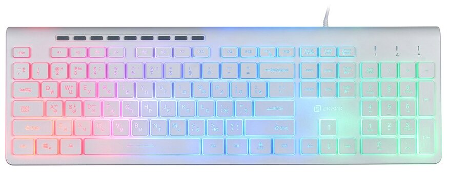 Клавиатура Oklick 490ML белый USB slim Multimedia LED