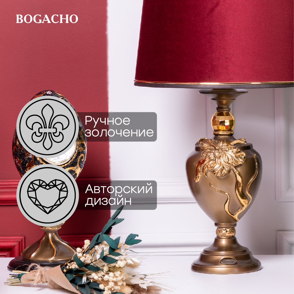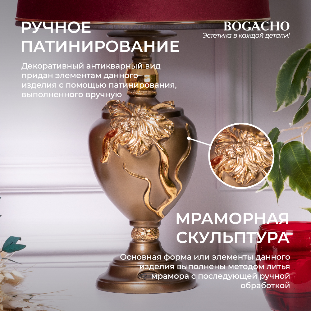 Настольная лампа Bogacho Флер де Лис бронзовая с бордовым абажуром Тюссо Конфети информация: