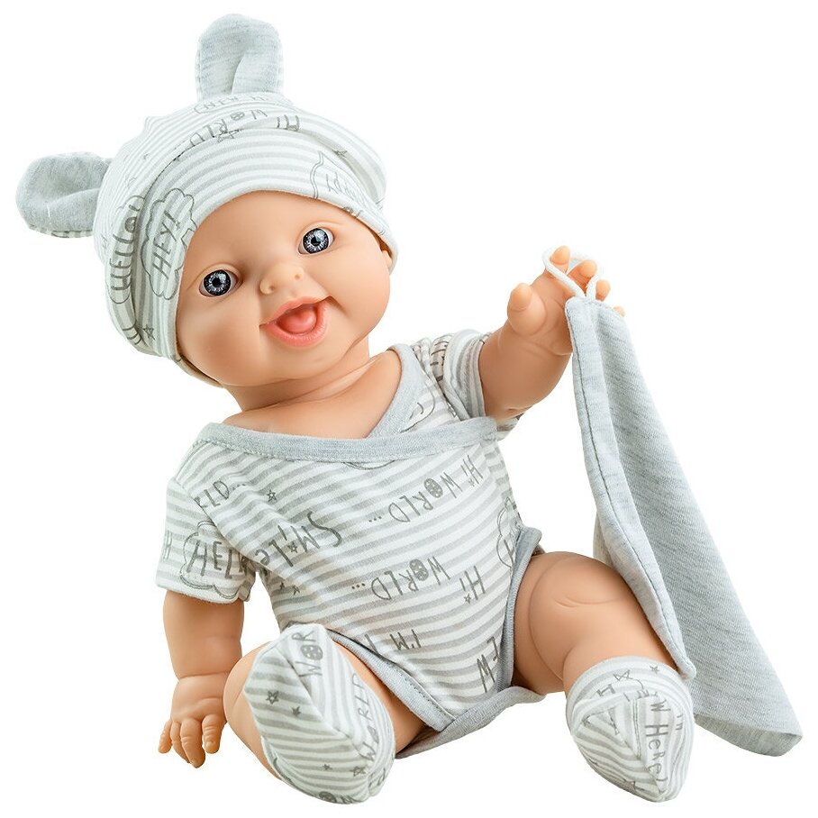 Пупс Paola Reina Горди Карлос в полосатом комбинезоне и шапке с ушками, 34 см информация: