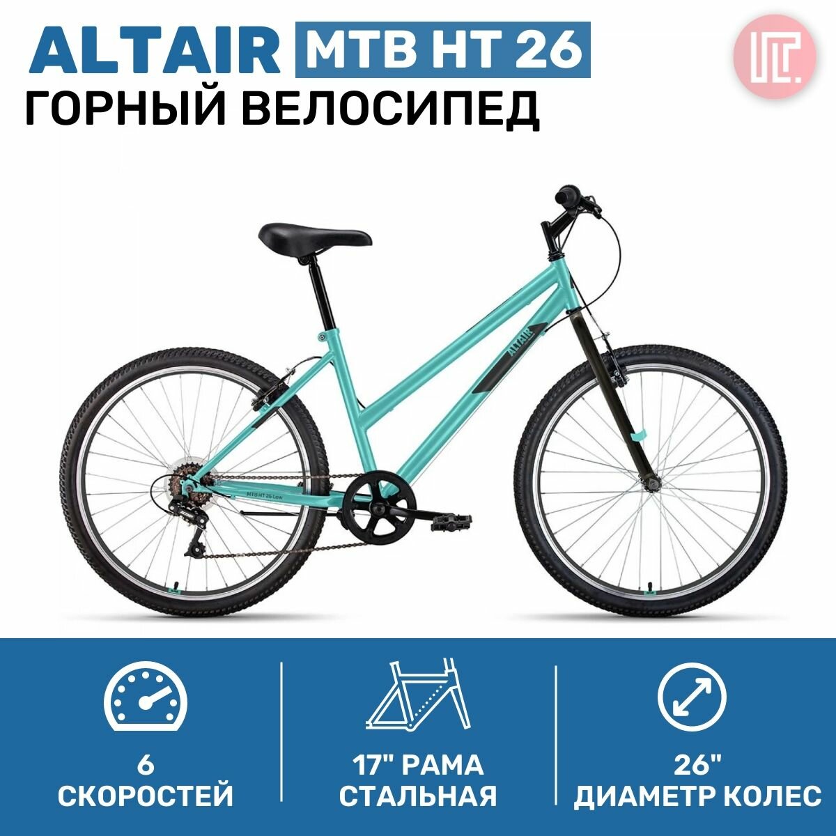 Велосипед ALTAIR MTB HT 26 low (26" 6 ск. рост. 17") 2022, мятный/чёрный, IBK22AL26124 информация: