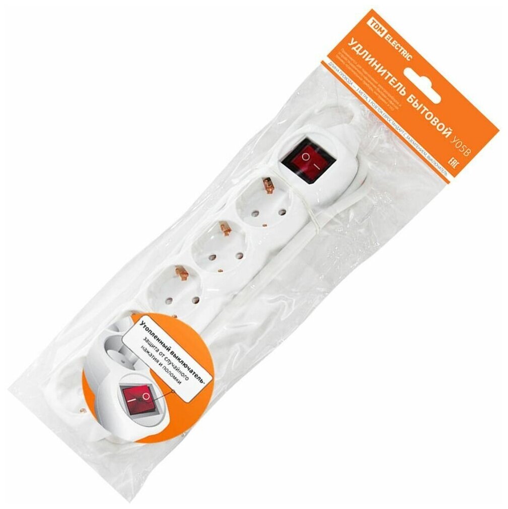Удлинитель бытовой TDM У05В, 5 гнезд, с заземлением и выключателем, ПВС 3x1, 3м