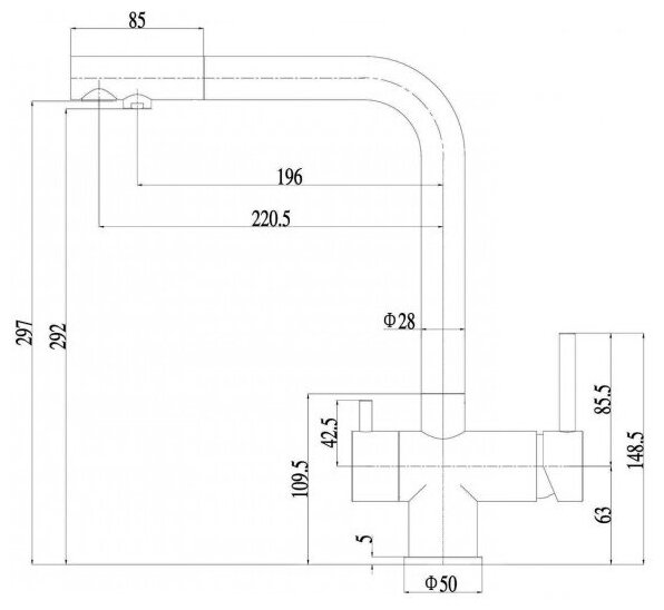 Смеситель для кухни с подключением к фильтру с питьевой водой из нержавеющей стали SUS304 Calorie CAL50116-3
