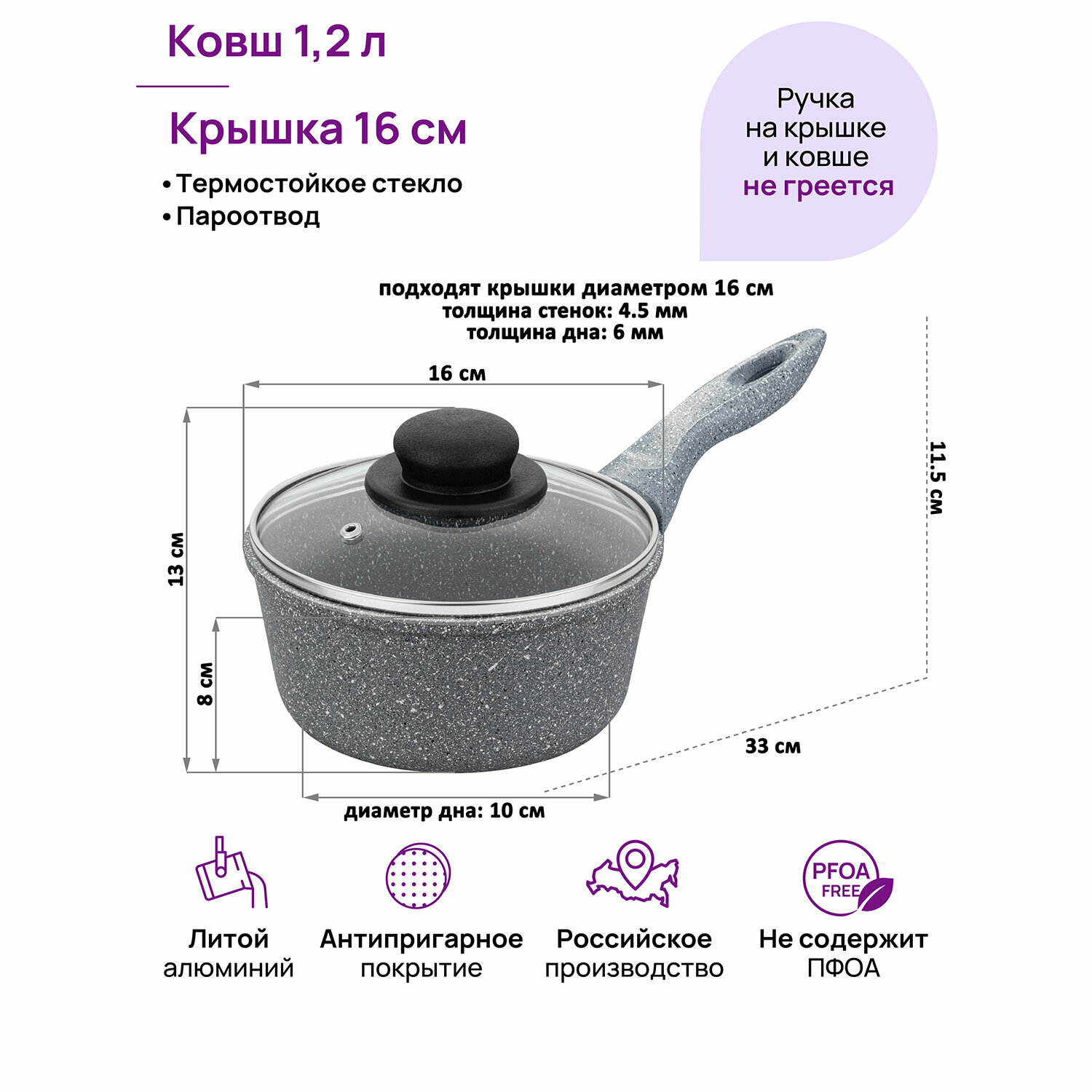 10 цен на Ковш 1,2 л Elan Gallery гармония вкуса Серый мрамор с крышкой с ручкой, 33*17*13 см