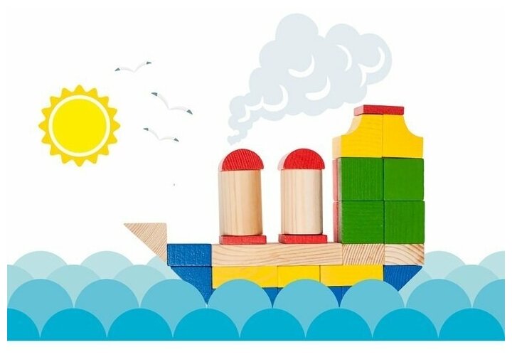 Конструктор деревянный HomeWorld. Деревянные цветные фигуры. Набор 65 элементов. информация: