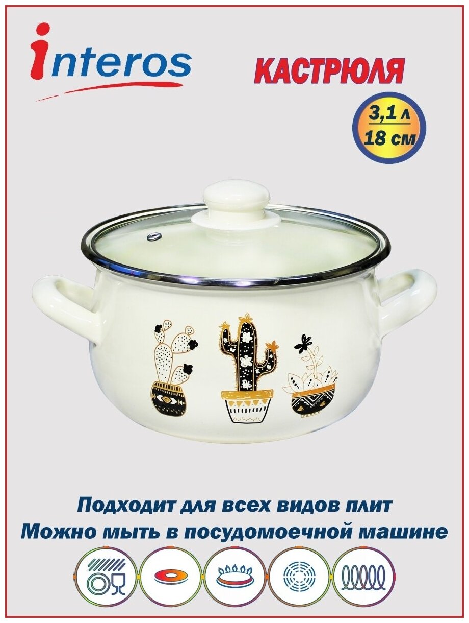 Кастрюля эмалированная 3,1л Кактусы белые информация: