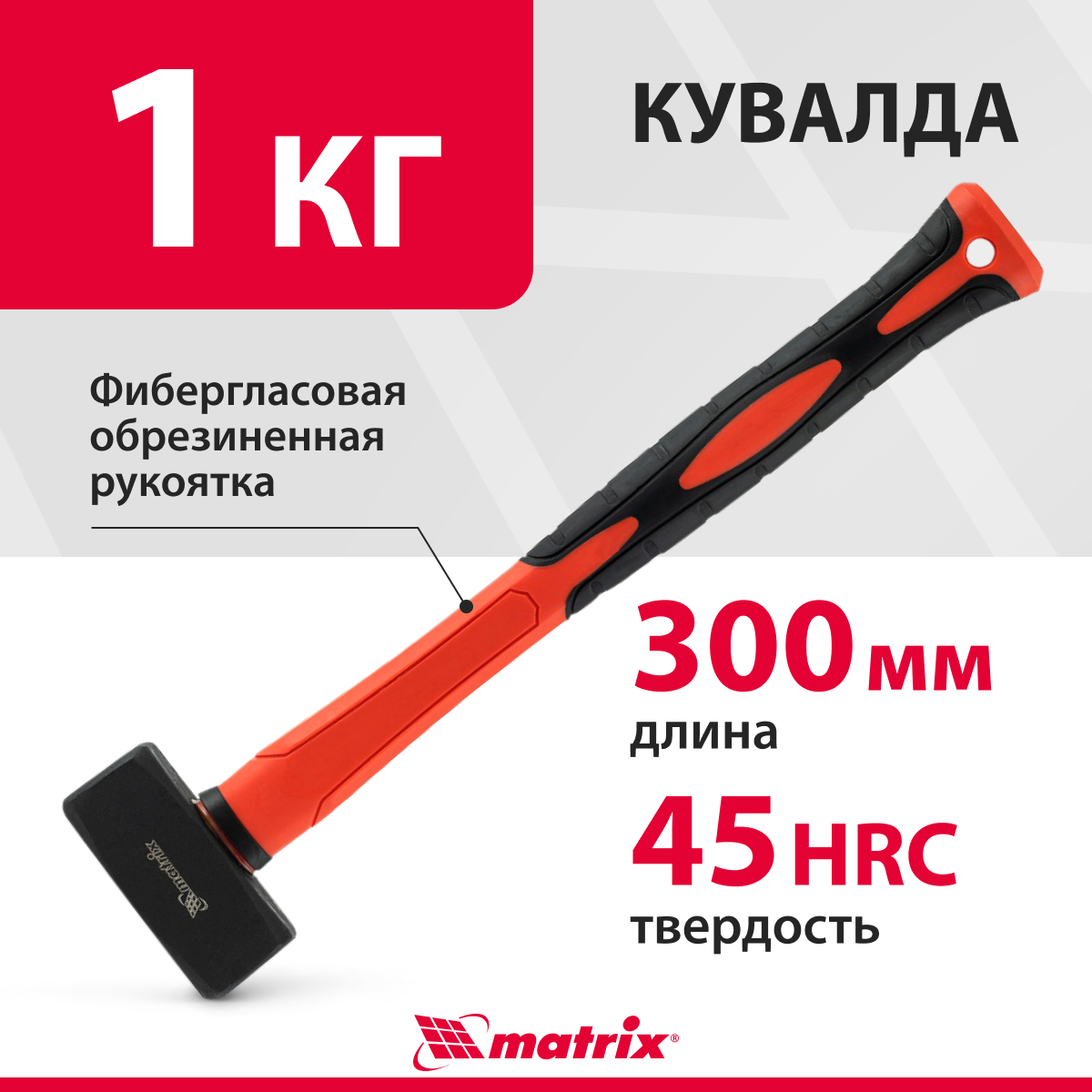 Кувалда 1 кг, фибергласовая обрезиненная рукоятка 380 мм Matrix информация: