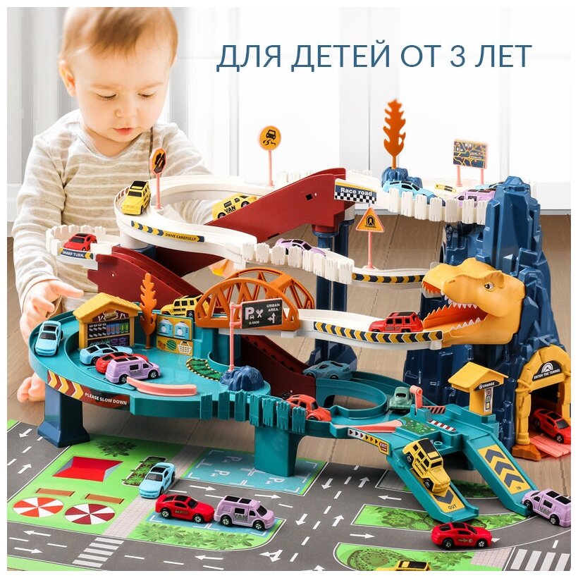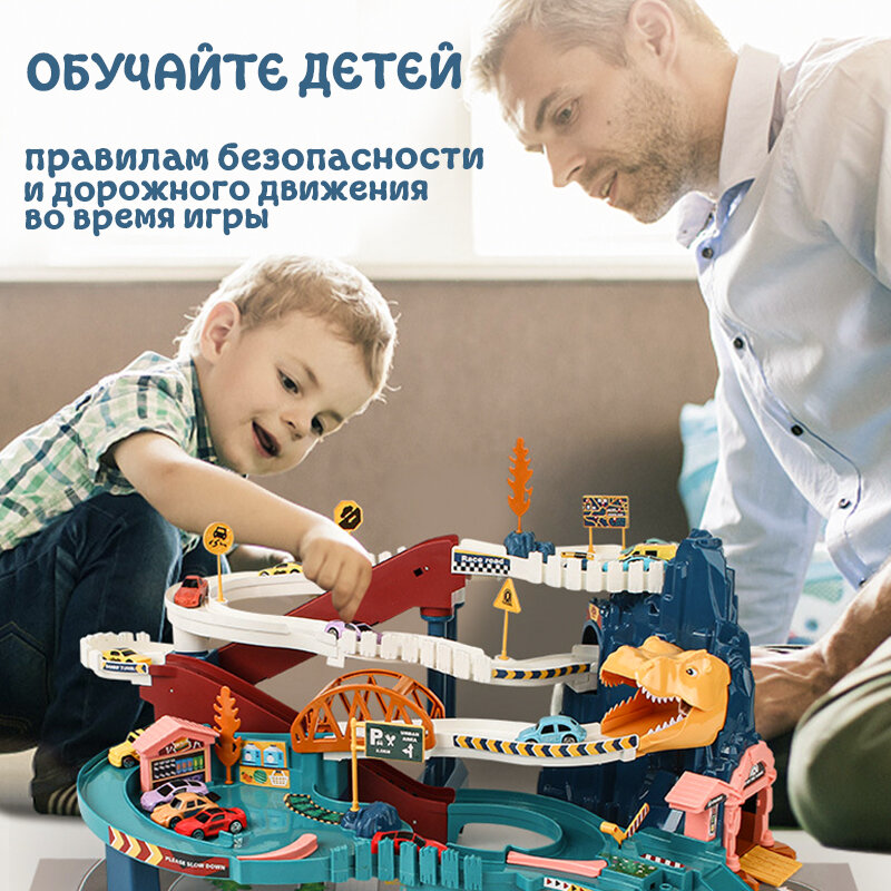 Парковка автотрек AveBaby Dino, игровой набор, автотрек, авто-трек, паркинг информация: