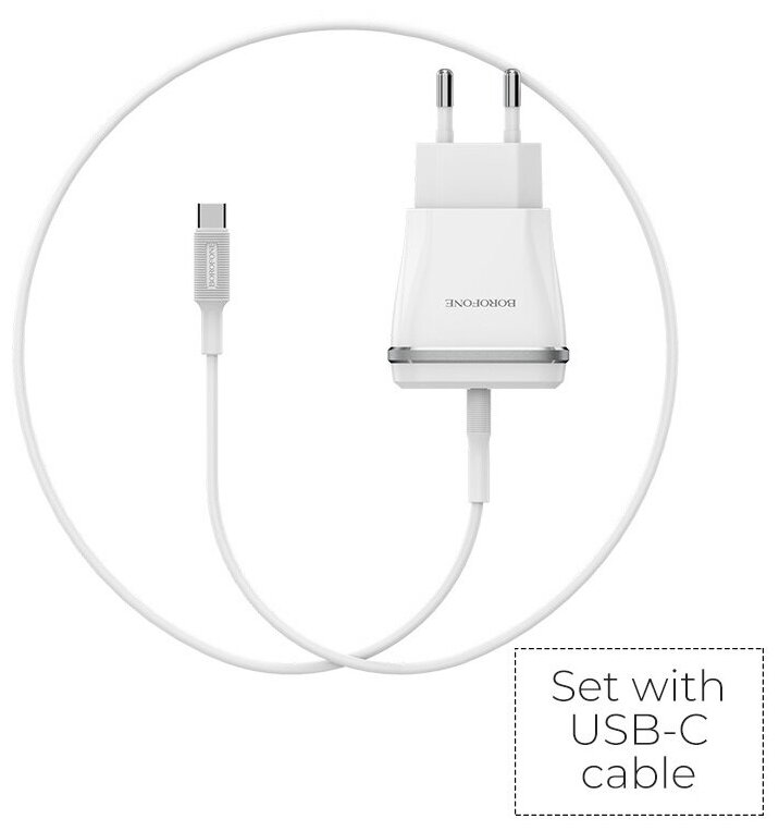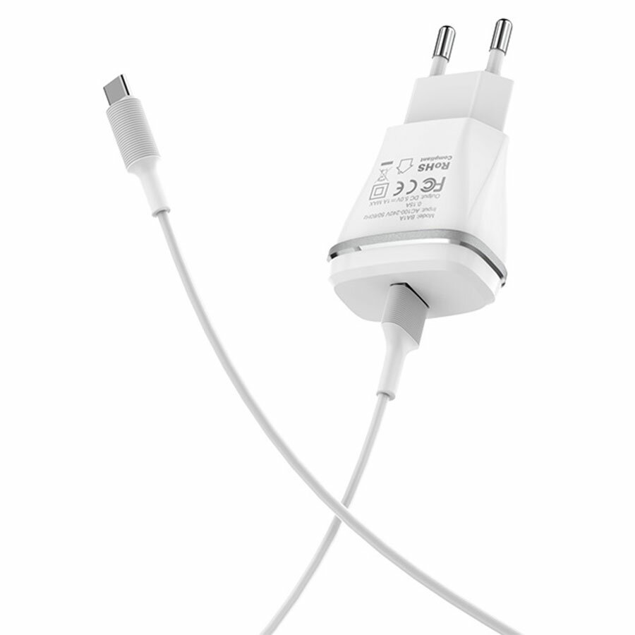 Зарядное устройство BOROFONE BA1A Joyplug USB + Кабель USB-Type-C, 1A, белый информация: