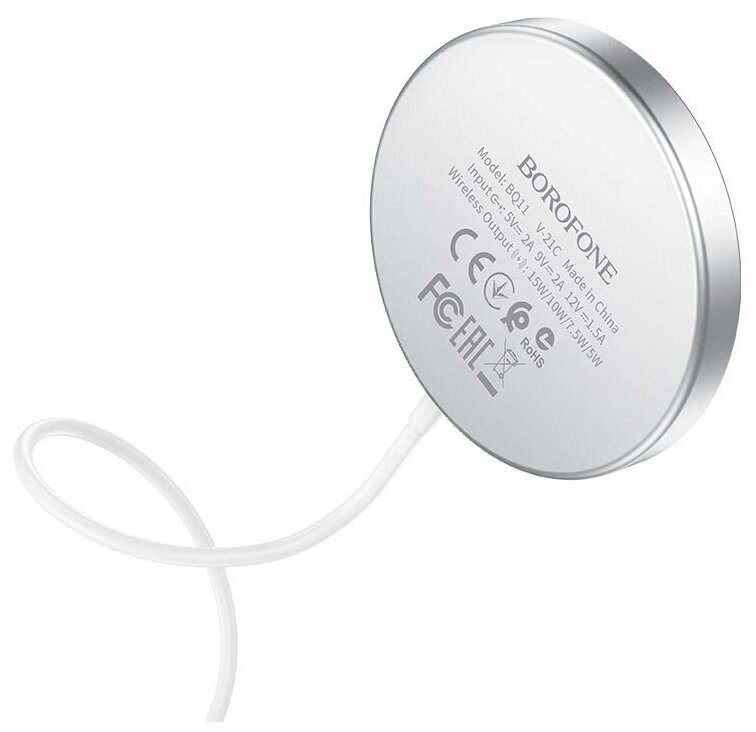 Зарядное устройство беспроводное Borofone, BQ11, Flash, 2000mA, пластик, QC3.0, магнитный, 15W, цвет: серебряный информация: