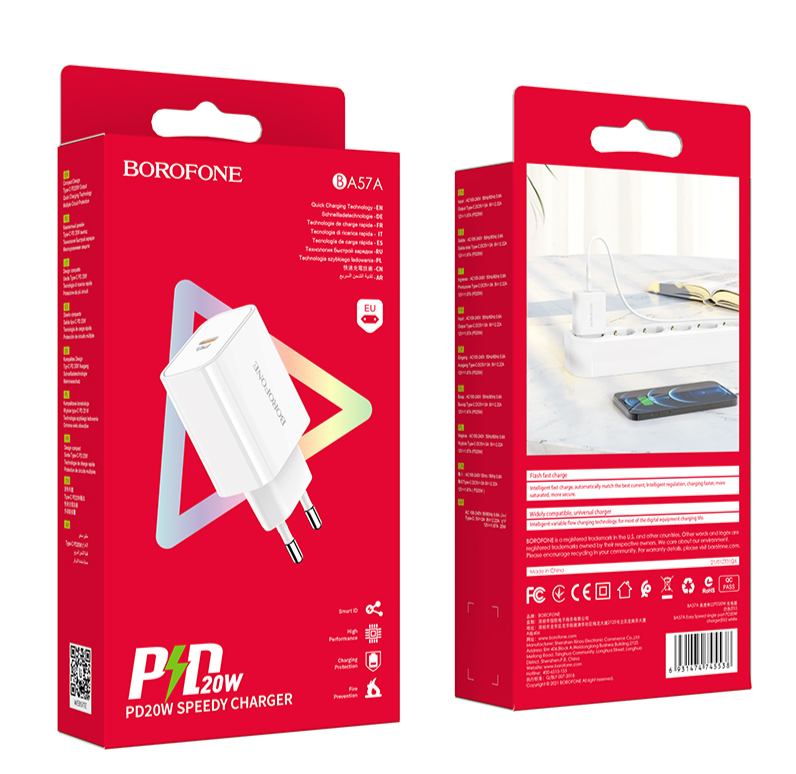 Сетевое зарядное устройство BOROFONE BA57A Easy Speed, PD20W, белый