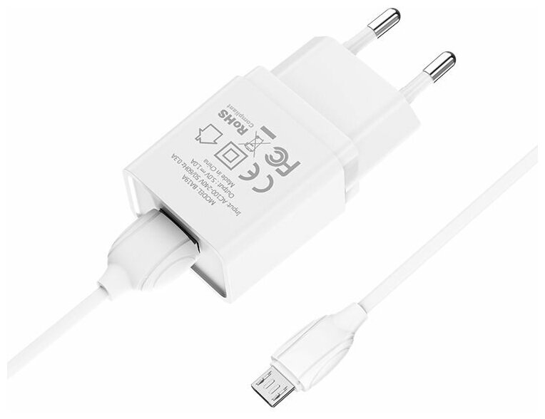 Сетевое зарядное устройство BOROFONE BA19A Nimble 1xUSB, 1А + кабель MicroUSB, 1м (белый) информация:
