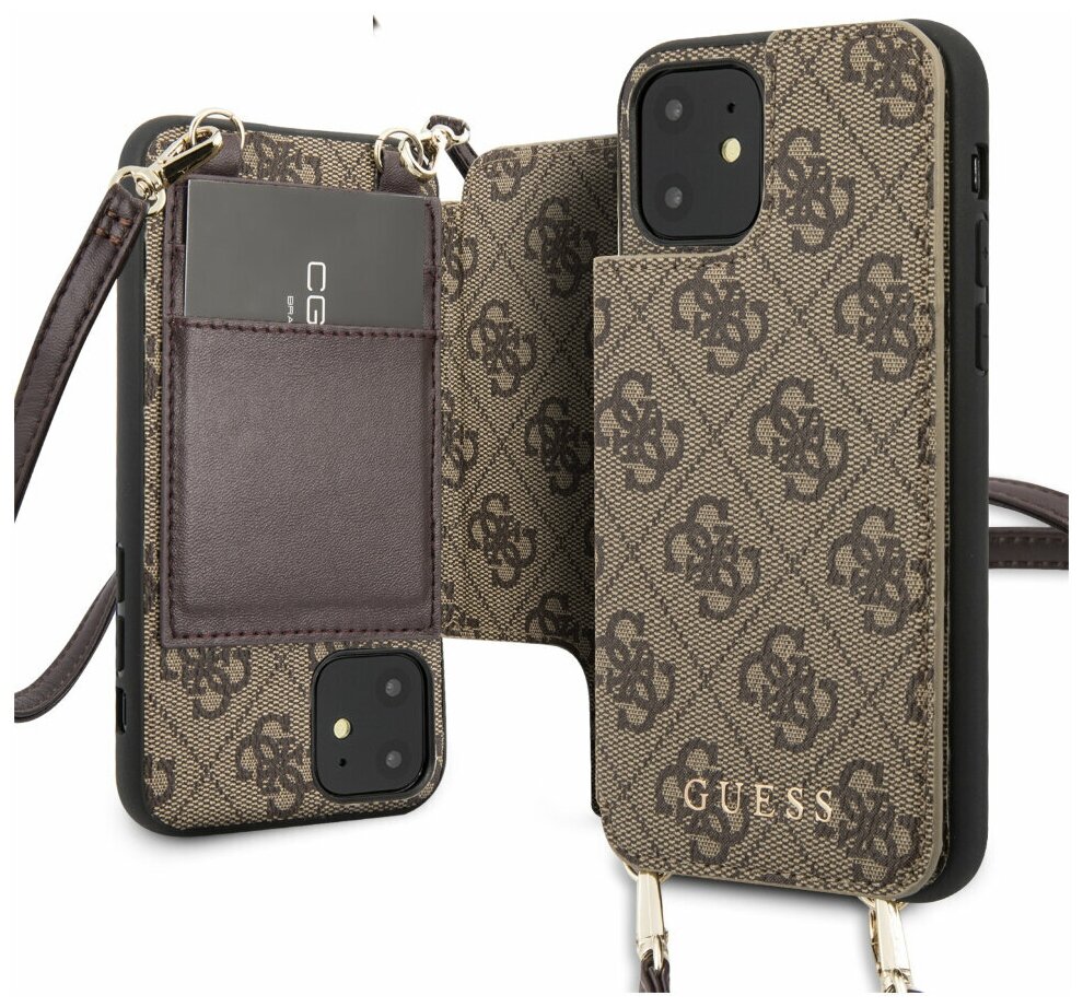 10 цен на Guess для iPhone 11 чехол 4G Crossbody cardslots magnetic Hard Brown