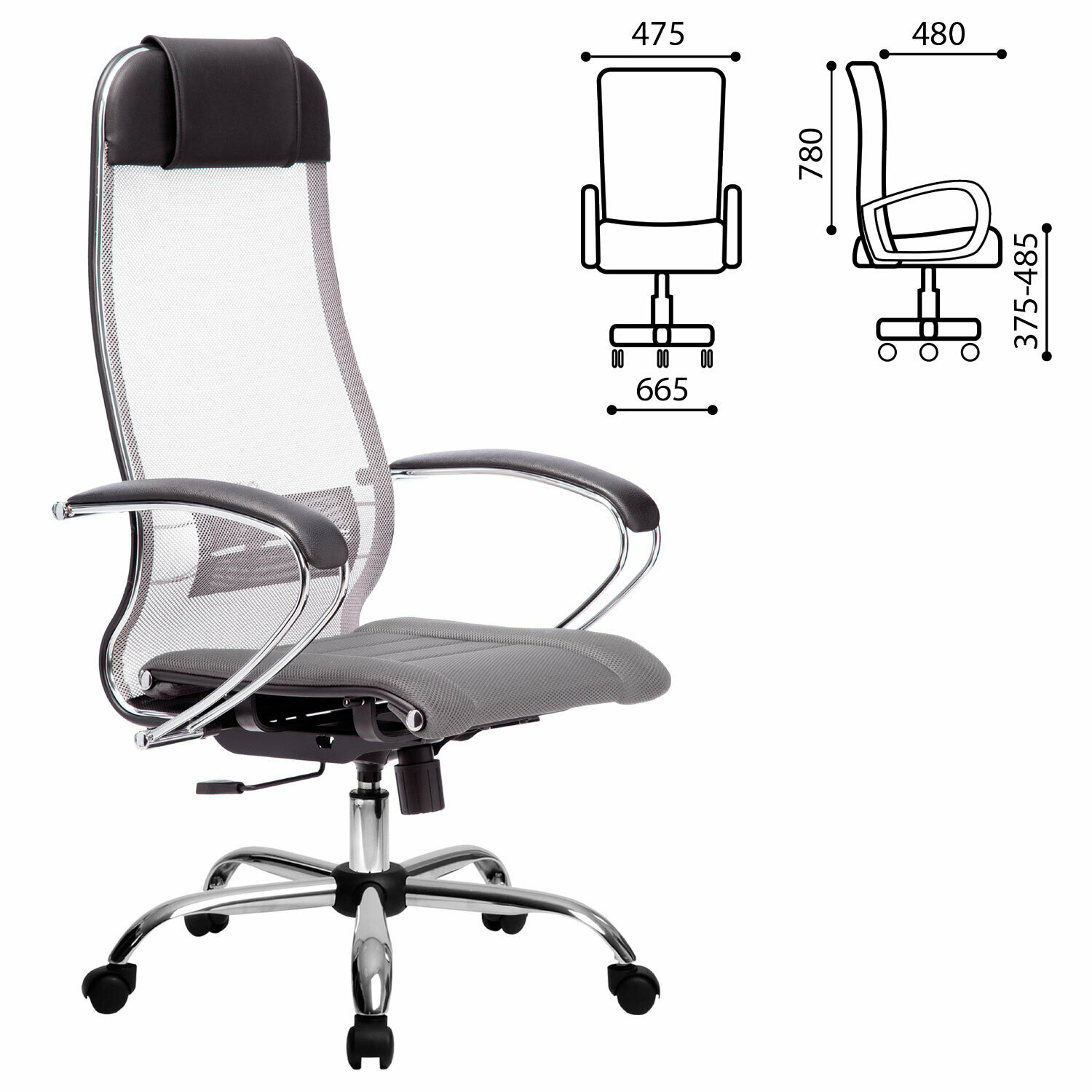 Кресло офисное метта «К-3» хром, ткань-сетка, сиденье и спинка регулируемые, светло-серое информация: